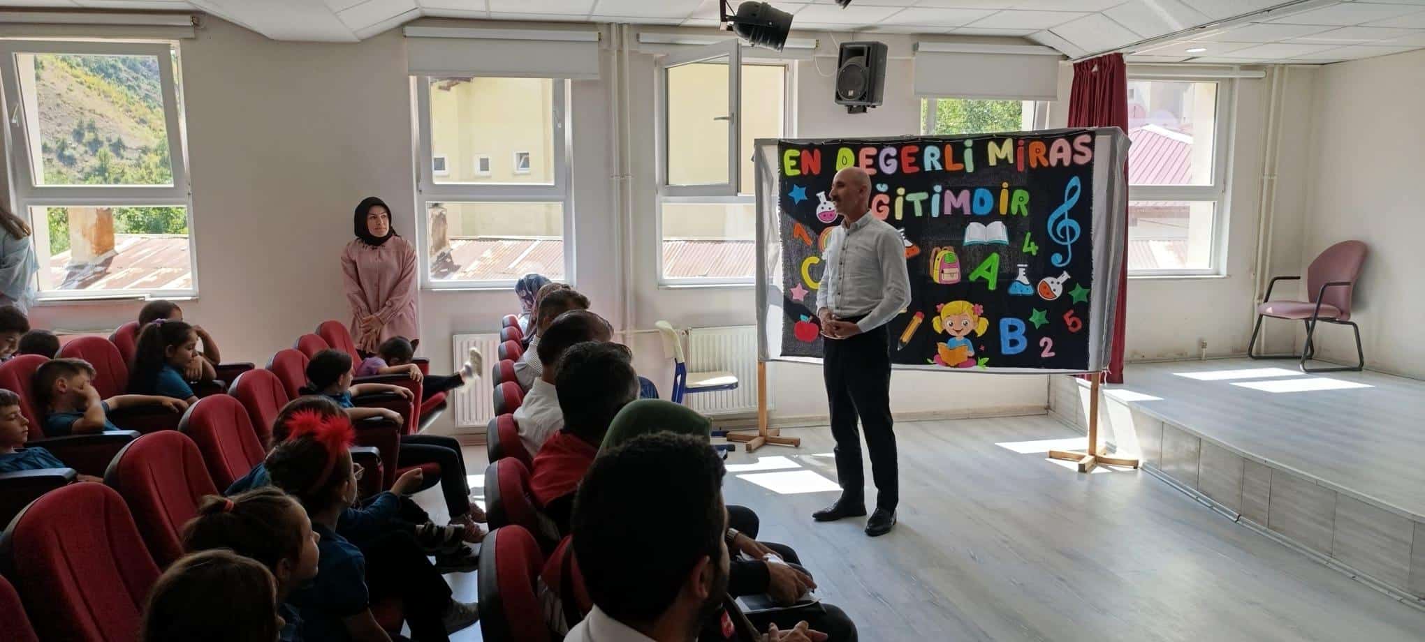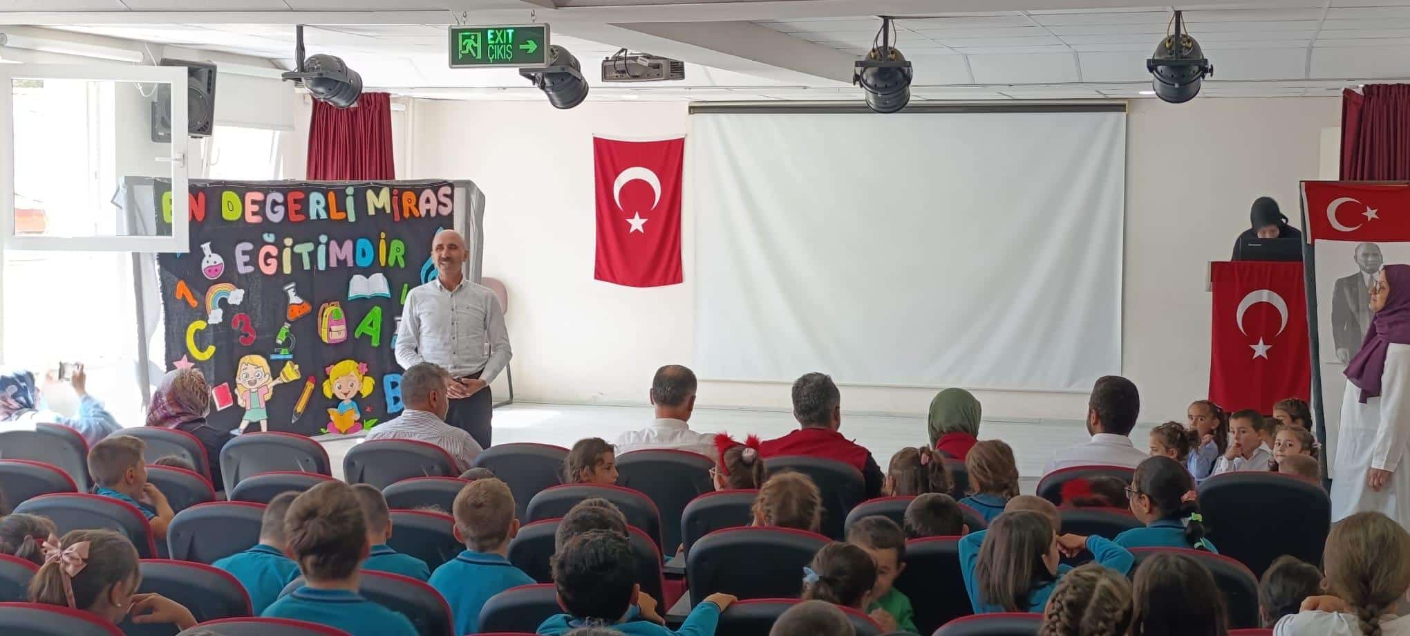 Saygı duruşu ve İstiklal Marşı ile başlayan programda, okul müdürü Eyüp YAZICIOĞLU'nun açılış konuşmasını yaparak tüm öğrencilere başarı dolu bir yıl diledi. Ardından İlçe Milli Eğitim Müdürü Ebubekir ALP, yaptığı konuşmada ilköğretimin çocukların hayatındaki önemine vurgu yaparak şunları söyledi: